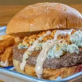 Blackened Angus Burger, Topped With Gorgonzola Cheese And Buffalo Aioli
