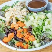 Kale and Spring Mix, Chopped Green Onion, Diced Carrots, Wonton Strips, And Cucumbers, With Sesame Ginger Dressing
