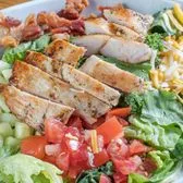 Romaine Lettuce, Diced Tomato, Cucumbers, Crumbled Bacon, Blended Cheeses, Grilled Chicken Breast, BBQ Ranch Dressing