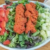 Spring Mix, Diced Tomato, Cucumber, Two Buffalo Chicken Tenders, Bleu Cheese Dressing