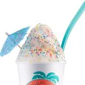 A rainbow blend of Banana, Blue Coconut, and Strawberry flavors with whipped cream & Party Sprinkles
