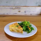 bacon, gruyere and caramelized onions in a custard-style quiche with choice of roasted potatoes or a side salad