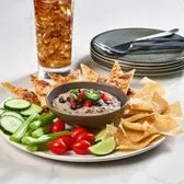 black bean salsa, jalapeno, tortilla chips, toasted chili lime pita, cucumbers, celery, tomatoes