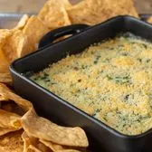 spinach, artichoke, garlic parmesan cream sauce, crispy tortilla chips