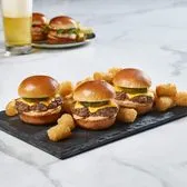 three per order, black angus burger*, American cheddar, Louie sauce, pickle