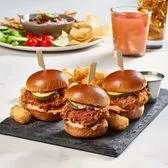 hand battered chicken, Nashville Hot Rub, spicy chili aioli, pickles. served with ranch