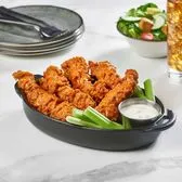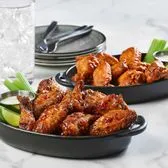crispy breaded chicken, tossed in choice of wing sauce, celery, ranch (190 cal) or blue cheese dressing (220 cal)