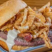 1/2 lb angus beef burger cooked to order, topped with melted aged cheddar, crispy onions and our own steak house aioli.