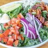 Chopped romaine, Chopped Bacon, Tomato, Onion and Avocado served with Creamy Blue Cheese Dressing.