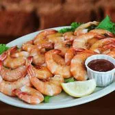 1LB Cold Boiled Shrimp served with cocktail sauce.