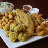 Shrimp, catfish, oysters and crawfish tails. Served with shoestring fries, hush puppies, and coleslaw.