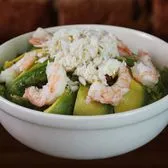 Boiled shrimp, jumbo lump crab, tomato, avocado, mixed greens and cucumbers. Served with parmesan garlic and lemon wedges