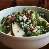 Kale, mixed greens, Honeycrisp apples, tomato, candied pecans, blue cheese crumbles, blue cheese vinaigrette.