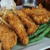 DIP AWAY with country white gravy, honey mustard, Ranch. Served with shoestring french fries, choice of one side.