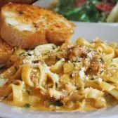 Maw Maw’s famous “no wonder y'all so fat” crawfish fettuccine Alfredo pasta. Served with choice of House or Mad Hatter salad and French bread.