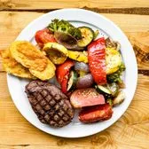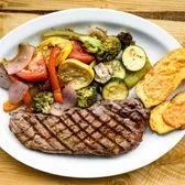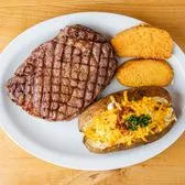 All dinners include a fresh garden or Caesar salad, plus your choice of a loaded baked potato, rice, a side of fries, or assorted grilled vegetables.