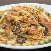 Japanese sautéed noodles with vegetables in a special sauce with Chicken.
