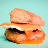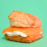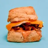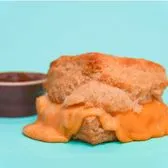 grilled cheese sandwich with mozzarella and cheddar, marinara dipping sauce on a handmade buttermilk biscuit