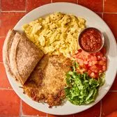 Scrambled Eggs served with our scratch-made potato hash cake, diced local tomatoes, shredded lettuce, house-made salsa & your choice of tortillas
