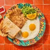 Two pasture raised Organic Eggs served with a Scratch made Hash Cake and your choice of toast.