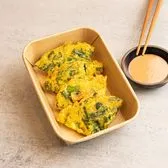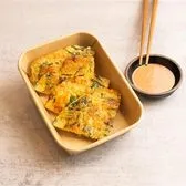 Veggie Pancake pan fried until slightly crispy. savory onion & scallion vegetable flavor. Comes with 4 pieces & our NEW Dipping Sauce and House Made Soy Sauce!