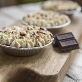 This classic favorite is filled with thick and rich chocolate custard in our signature Oreo crust, topped with lightly sweetened fresh whipped cream, and garnished with chocolate shavings.