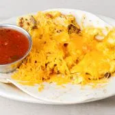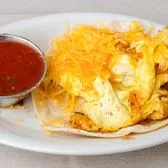 Soft scrambled eggs folded with crispy tortilla strips, sautéed peppers and onions, and melted cheese, wrapped in a warm tortilla for a bold, Tex-Mex breakfast classic.