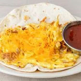 Seasoned beans and scrambled eggs finished with melted cheese, wrapped in a warm tortilla for a satisfying breakfast classic.