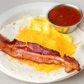 Crispy bacon and scrambled eggs finished with melted cheese, wrapped in a warm tortilla for a satisfying, protein-packed option.