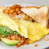 Avocado, tomato, sprouts & Swiss - American cheese, hash browns & your choice of toast