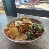 charred red bell pepper chickpea hummus, sunflower seed, pickled crudité and grilled laffa