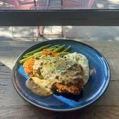 chorizo gravy, roasted green beans, garlic mashed potatoes