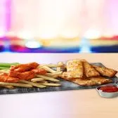 A little bit of this and a little bit of that! Our app sampler offers a taste of three party favorites: Cheesy Bread, French Fries and your choice of traditional bone-in or boneless wings. Comes with pizza sauce, ranch, blue cheese, ketchup. Serves approx. 4-6.