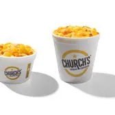 Mac and cheese, sprinkle shredded Cheddar cheese on top.