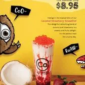 This delightful refreshing blend of strawberry and coconut is a creamy and fruity delight. Topped with strawberry popping boba. Perfect for any time of the day.