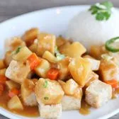 Crispy fried tofu served with homemade curry and rice