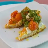 confit tomatoes, goat cheese & spicy pesto on focaccia