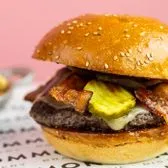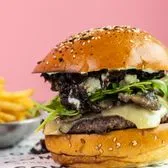 Common Bond Bistro & Bakery5740 San Felipe Street 130Open now$3.49delivery feeLUNCH & DINNERAvailable at 10:45amSnacksSandwichesSaladsSoupsBurgersEntréesFlatbreadsKids MenuCoffee BarNA BeveragesCookiesMacaronsEntremetsMuffinsSconesViennoiserieBreadsRetailBox LunchSavory PastriesBurgersCommon Bond Burgerground beef, gruyère, aged white cheddar, bibb lettuce, tomato, dijonnaise, pain de mie bun, parmesan friesUnavailableBacon BBQ Burgerchuck, brisket & rib blend, aged white cheddar, crispy bacon, grilled onions, pickles, BBQ sauceUnavailableMushroom Goat Cheeseburgerchuck, brisket & rib blend, forest mushrooms, goat cheese, balsamic onions, arugula & garlic aioliUnavailable