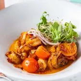 blackened gulf shrimp, cheese grits, creole sauce, cherry tomatoes, applewood smoked bacon, herb salad