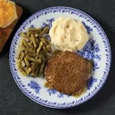 Our half-pound hamburger steak** in buttery garlic sauce comes with two or three classic sides. Plus, your choice of buttermilk biscuits or corn muffins.