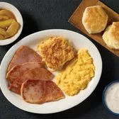 Three eggs* with buttery garlic sirloin steak tips or choice of sugar cured or country ham. Served with biscuits & gravy and two classic sides.