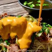 Egg noodles stir-fried with onions, bok choy, and bean sprouts, and topped with our spicy coconut cream sauce. With your choice of beef, chicken, pork, tofu, or +$2 for shrimp. Served with broth on the side.