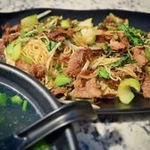 Egg noodles stir-fried with onions, bok choy, and bean sprouts, with your choice of beef, chicken, pork, tofu, or +$2 for shrimp. Served with broth on the side.