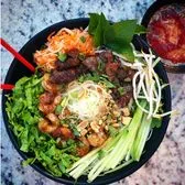 Lettuce, do chua, cucumbers, bean sprouts, cilantro, and peanuts, tossed together with our homemade fish sauce. Choice of beef, pork, chicken, tofu. Or +$2 for Shrimp.