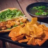 Our twist on a traditional Vietnamese banh mi. It comes with a side bowl of broth and chili-lime flavored wheat chips. Choice of Pork, beef, chicken, Shrimp, spam or tofu.