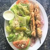 1 Skewer of Marinated Charbroiled Chicken Breast Tenders/Greek Salad/Onions/Tzatziki