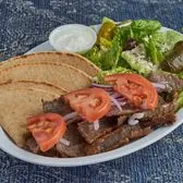 1 Regular Portion of Gyro & 1 Skewer Marinated Charbroiled Premium Sirloin Tips/Greek Salad/Dolma/Pita/Onions/Tomatoes/Tzatziki
