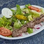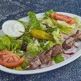 1 Skewer of Marinated Charbroiled Premium Sirloin Tips/Greek Salad/Onions/Tzatziki