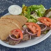 Double Portion Rotisserie blend of Beef & Lamb/Greek Salad/Dolma/Pita/Onions/Tomatoes/Tzatziki