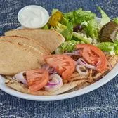 1 Regular Portion of Gyro & 1 Skewer Marinated Charbroiled Chicken Breast Tenders/Greek Salad/Dolma/Pita/Onions/Tomatoes/Tzatziki